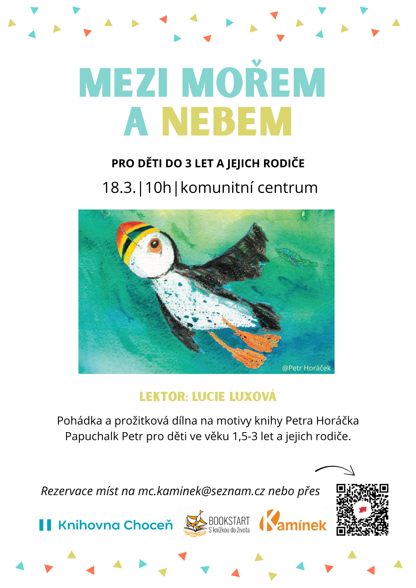 Středa 18.3. 10 hod. BOOKSTART Mezi mořem a nebem / Pohádka a prožitková dílna na motivy knihy Petra Horáčka Papuchalk Petr pro děti ve věku 1,5–3 let a jejich rodiče.