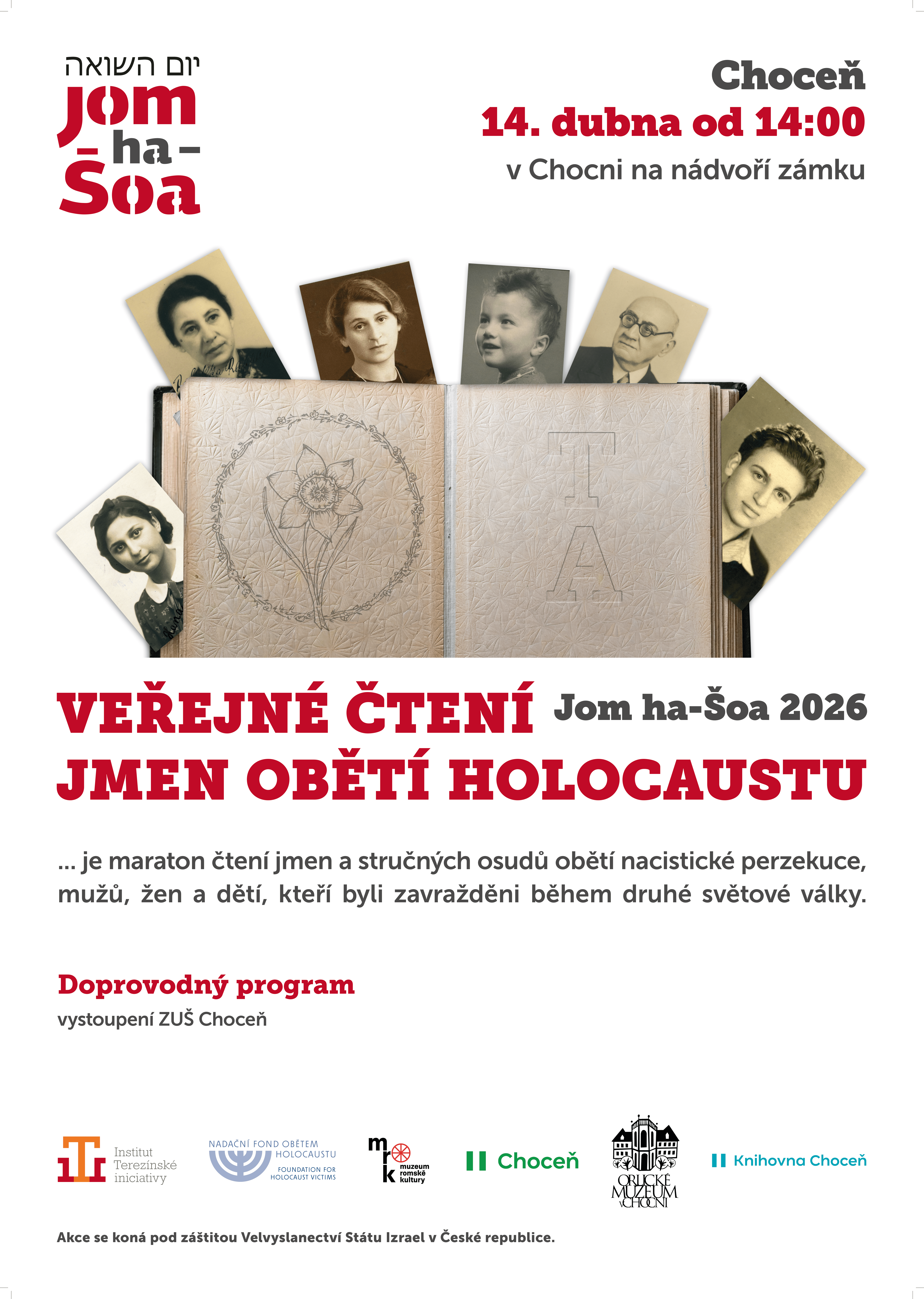 Jako každý rok budeme společně číst jména lidí, kteří byli během druhé světové války pro svůj původ nacisty nespravedlivě pronásledováni a zavražděni. Stejně jako v minulých letech se touto akcí připojujeme k uctění památky hrdinů a obětí holocaustu, který nese název Jom ha-šoa ve ha gvura (Den holocaustu a hrdinství) a upomíná na den zahájení povstání židovských vězňů nacistického ghetta ve Varšavě. Odvaha a hrdinství vězňů varšavského ghetta i všech dalších, kteří se odhodlali hájit právo na důstojnost nejen svou, ale i všech dalších utlačovaných a ponižovaných, je pro nás dodnes inspirací.