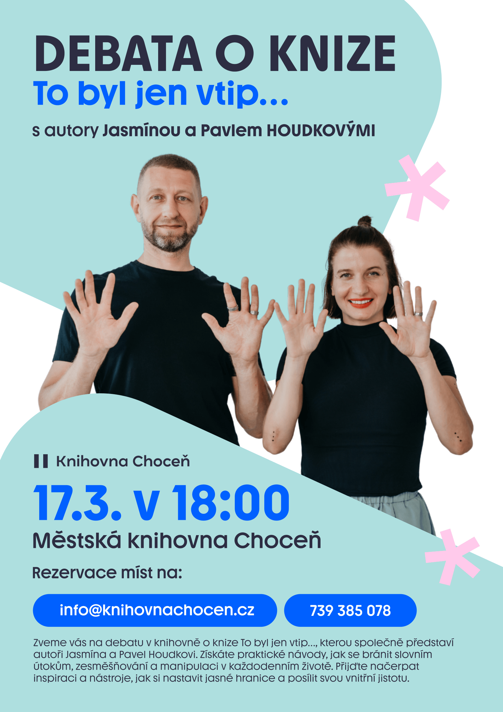 Úterý 17.3. 18 hod. To byl jen vtip… / Přednáška Jasmíny a Pavla Houdkových, zakladatelů projektu Moderní sebeobrana.