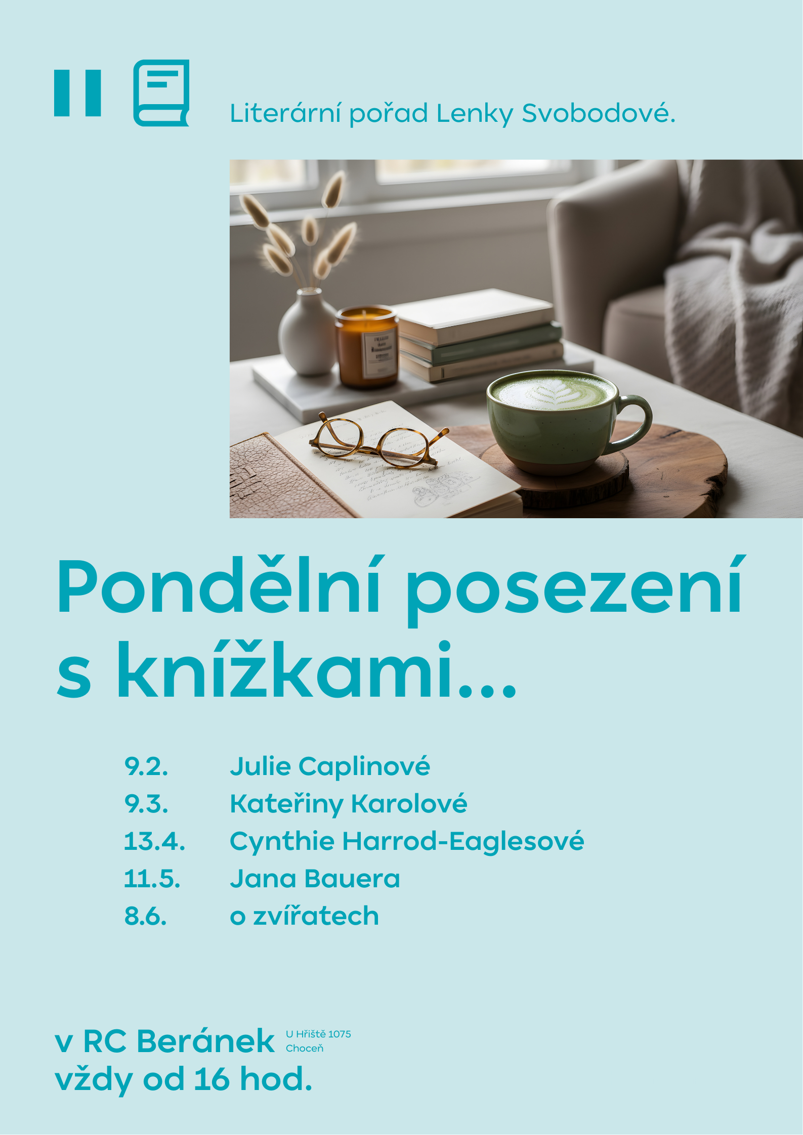 Rezervace míst na info@knihovnachocen.cz nebo tel. 739 385 078.