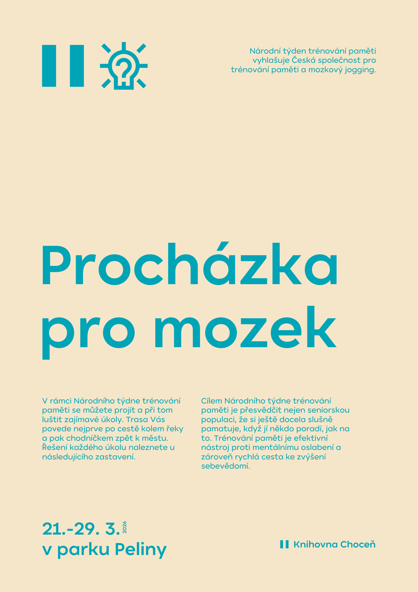 V rámci Národního týdne trénování paměti se můžete projít a při tom luštit zajímavé úkoly. Trasa Vás povede nejprve po cestě kolem řeky a pak chodníčkem zpět k městu. Řešení každého úkolu naleznete u následujícího zastavení.