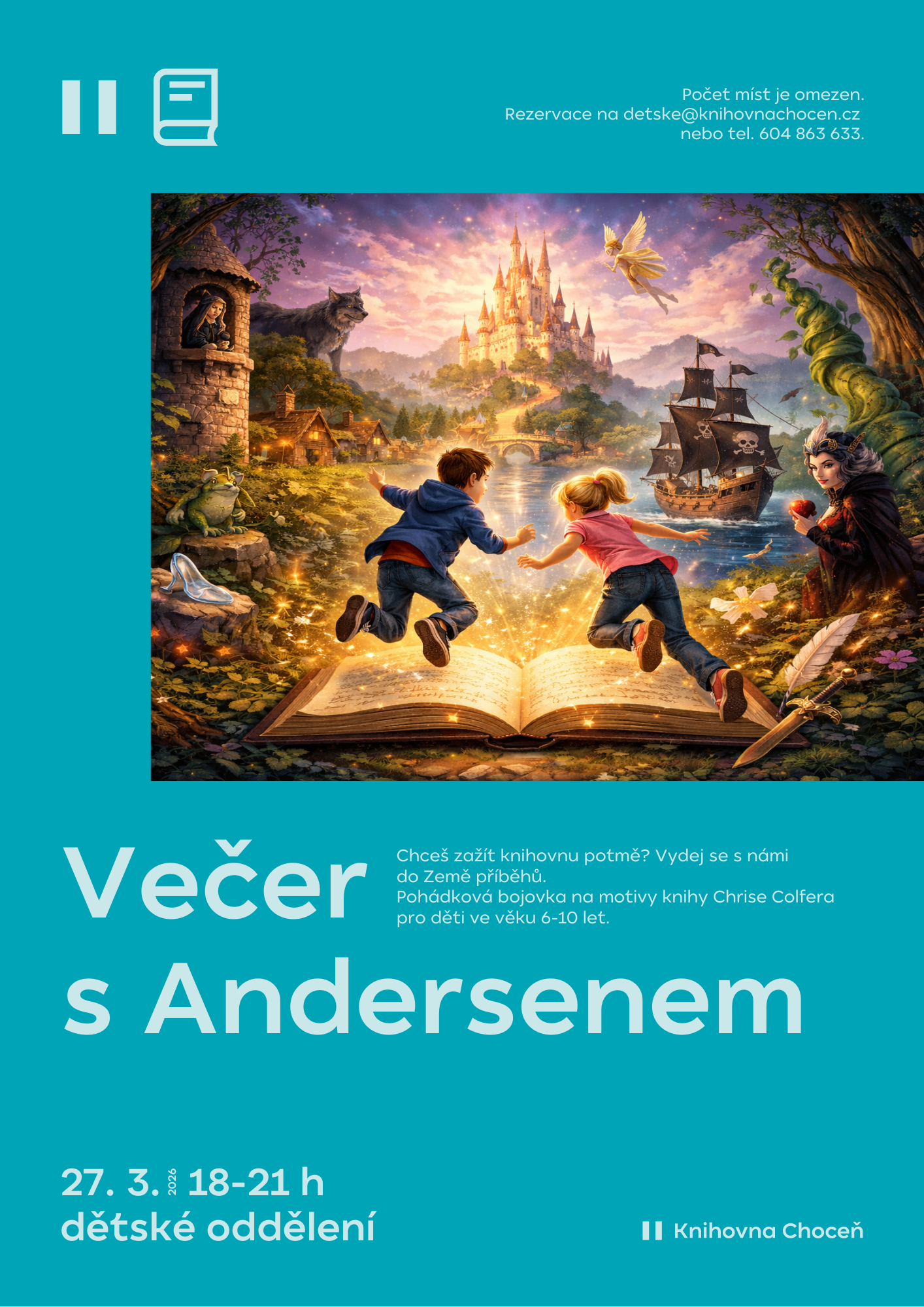 Pátek 27.3. 18–21 hod. Večer s Andersenem / Pohádková bojovka na motivy knihy Chrise Colfera Země příběhů pro děti ve věku 6–10 let.
